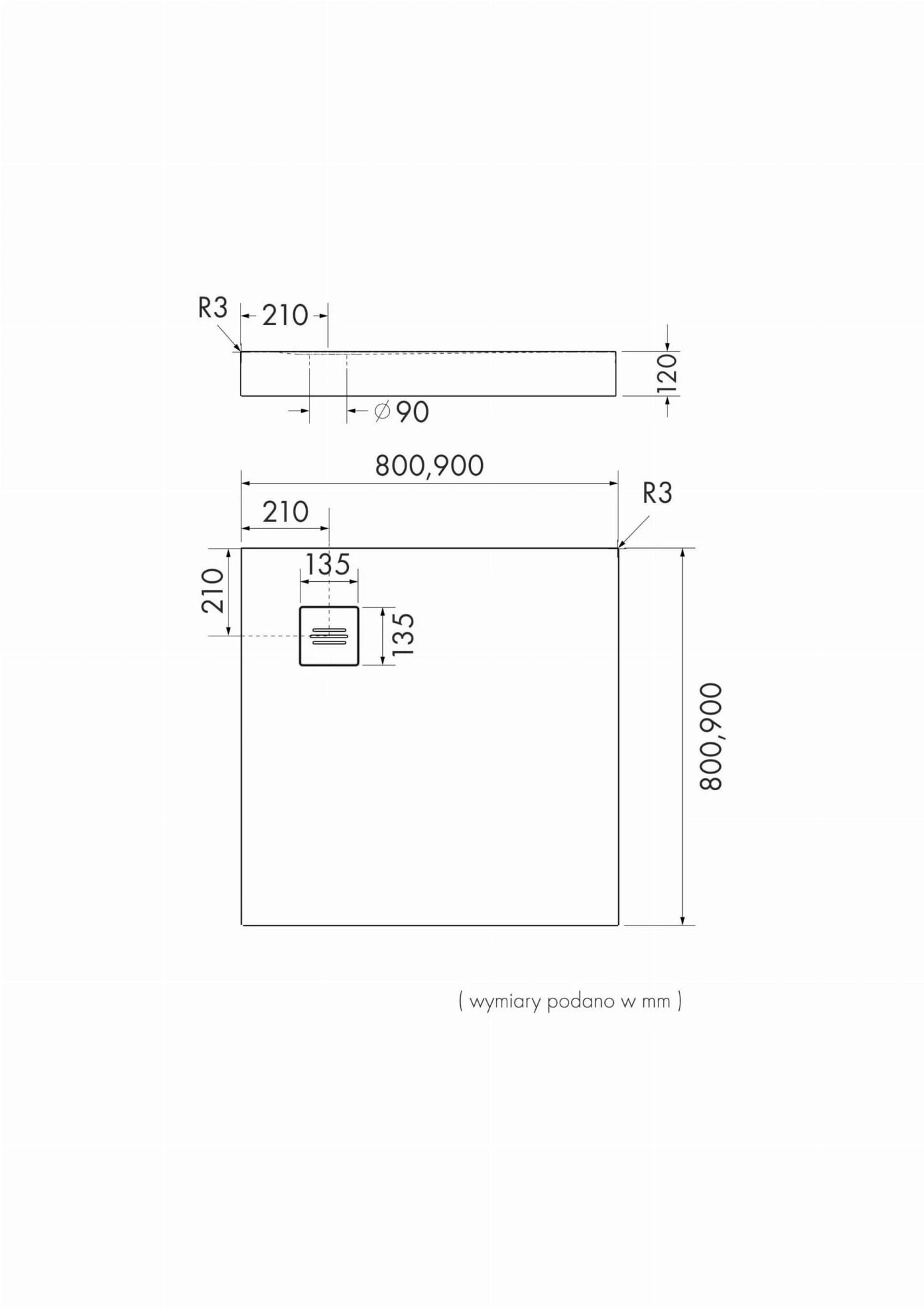 UWAGA ! Brodzik sprzedawany jest bez syfonu, pasujący syfon SDB90PS.