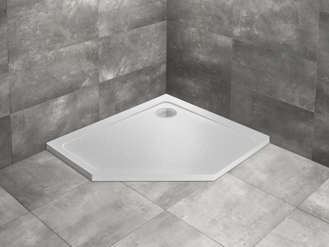 Brodzik pięciokątny asymetryczny Doros PT E Stone biały firmy Radaway.