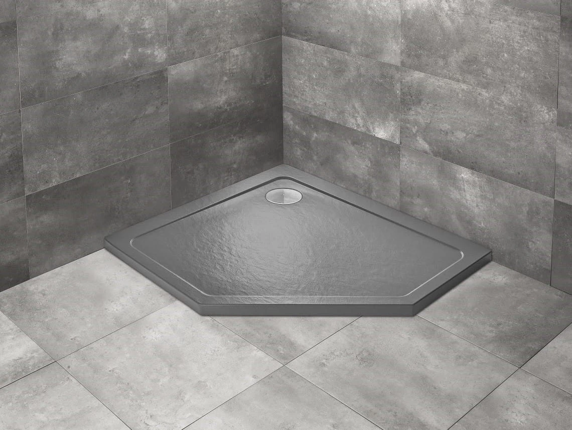 Brodzik pięciokątny asymetryczny Doros PT E Stone w kolorze antracytowym firmy Radaway.