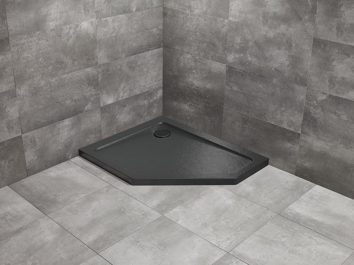 Brodzik pięciokątny asymetryczny Doros PT E Stone w kolorze czarnym firmy Radaway.