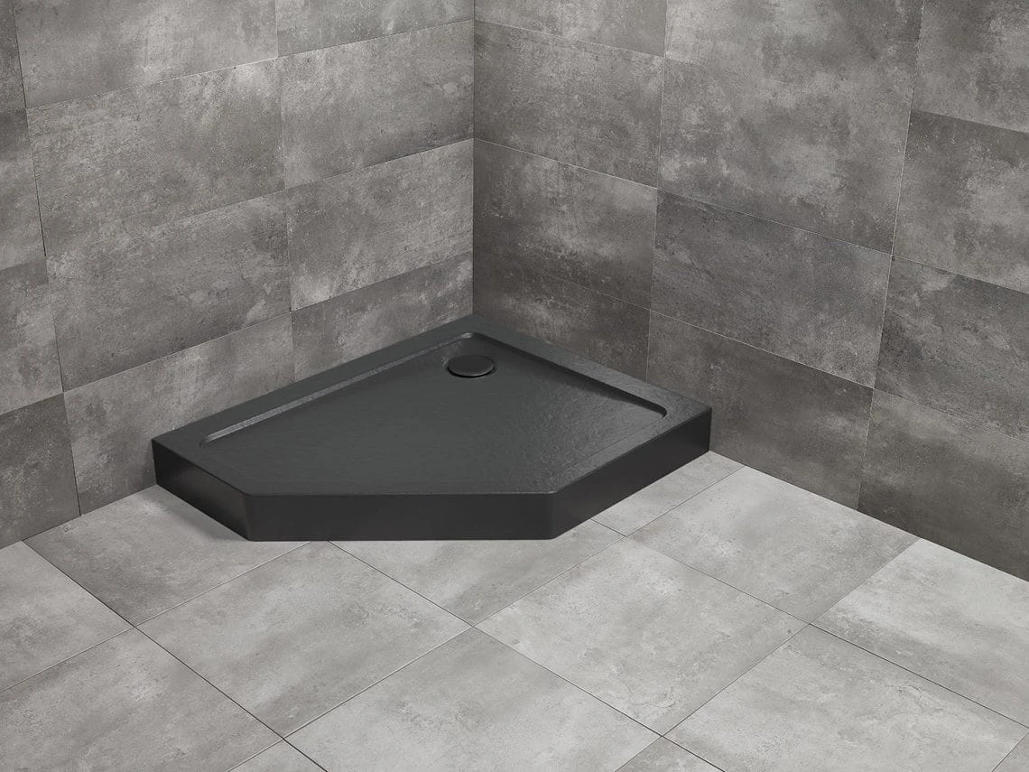 Brodzik pięciokątny asymetryczny Doros PT E Compact Stone czarny firmy Radaway.