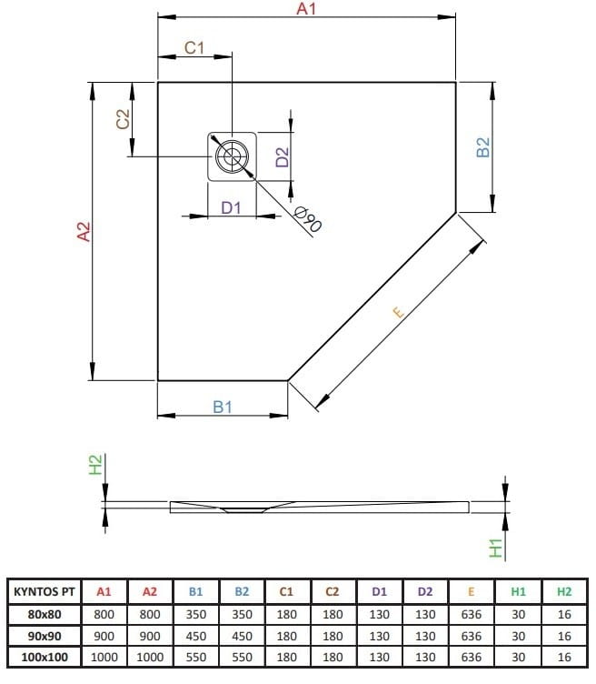 - Otwór na syfon o średnicy 90 mm.