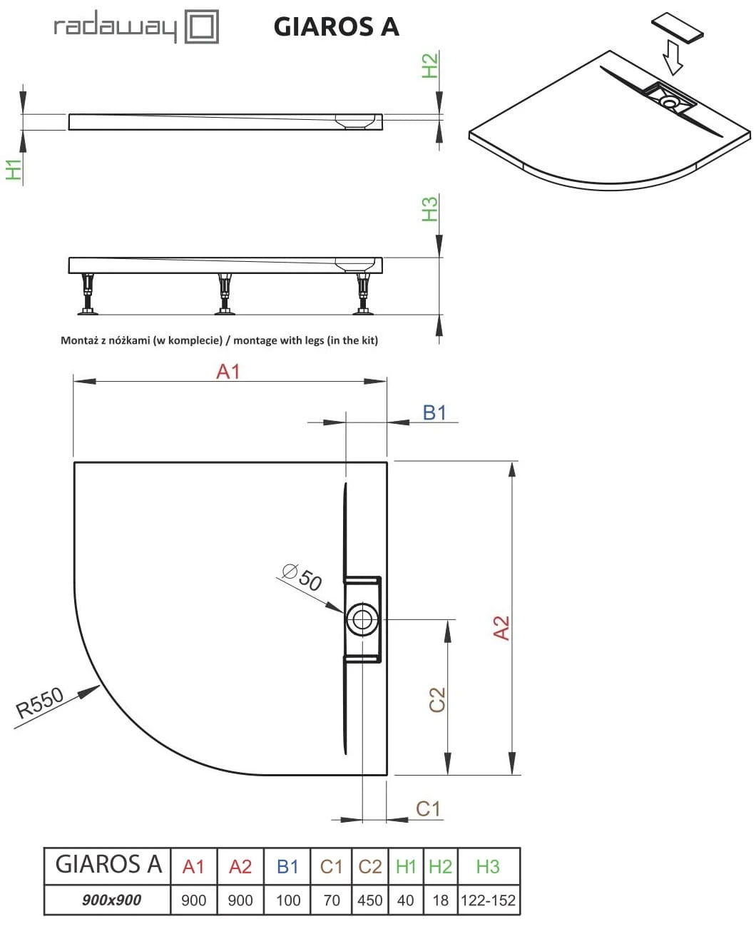 Brodzik półokrągły Radaway Giaros A 90x90x4x1,8