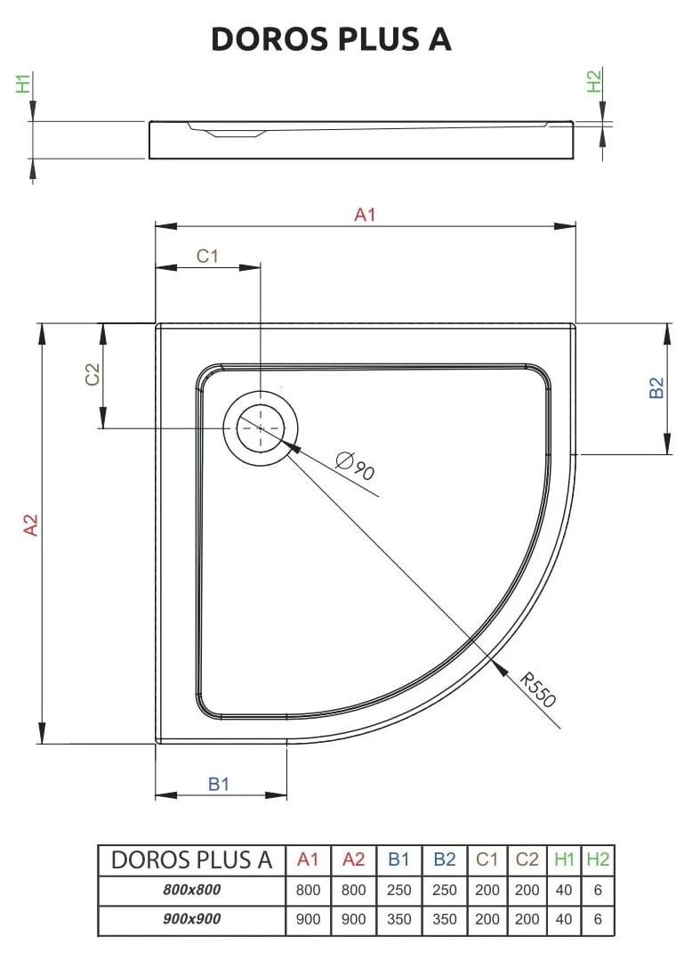 Brodzik półokrągły Radaway Doros Plus A 90x90