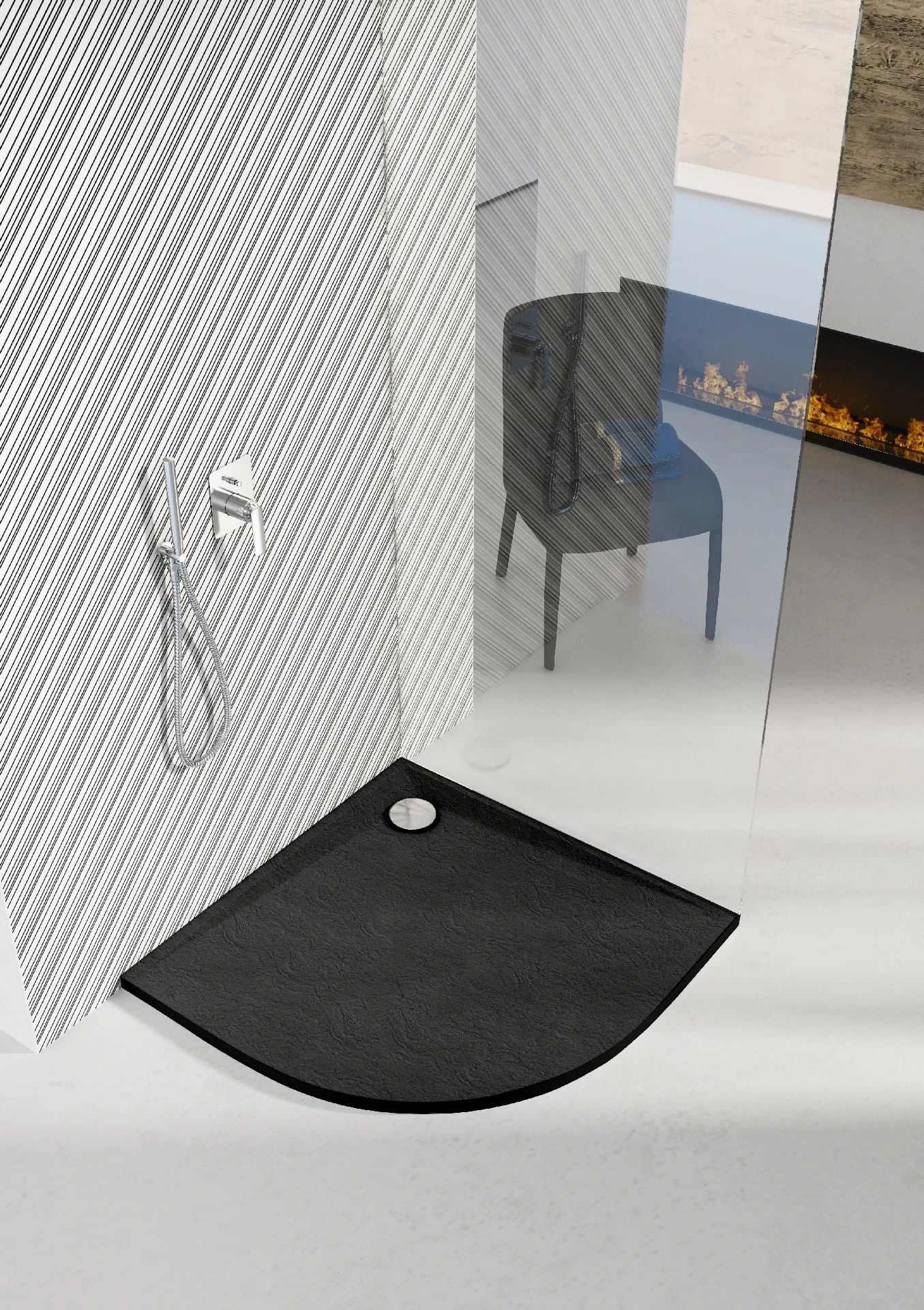 Seria Libra posiada matową powierzchnię o strukturze, naturalnego kamienia w ciemnym odcieniu (RAL7016). Zaledwie 3 cm wysokości całkowitej oraz minimalistyczne wzornictwo efektownie akcentują strefę prysznica, zdobiąc wnętrze w nietuzinkowy sposób. Powierzchnia „Anthracite Stone” jest niezwykle trwała, do tego posiada właściwości Easy to Clean® oraz Antibac®.
