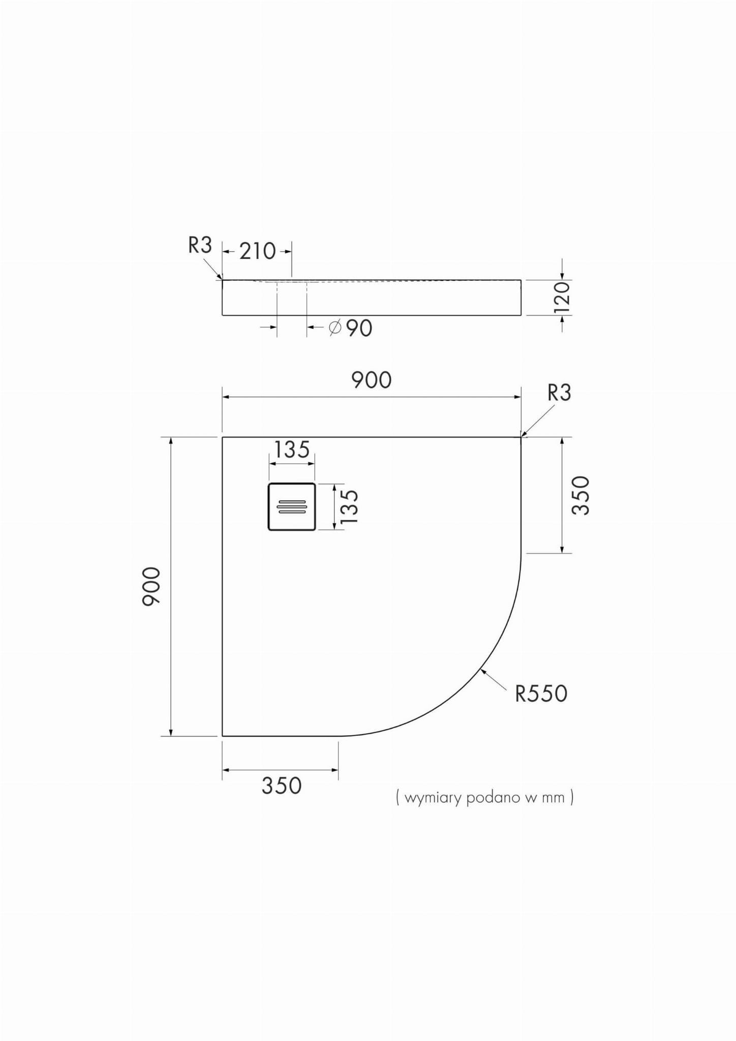 UWAGA ! Brodzik sprzedawany jest bez syfonu, pasujący syfon SDB90PS.