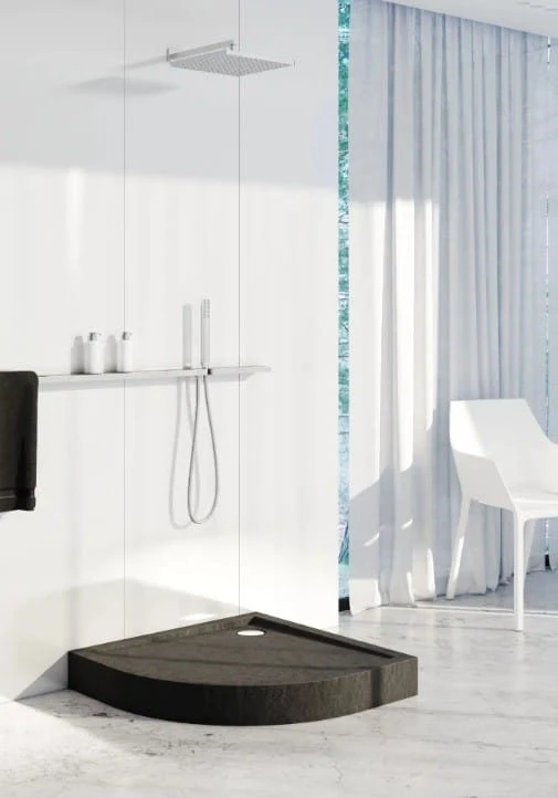 Brodzik półokrągły Cameron Black Stone 80x80 Schedpol Schedline, czarny
