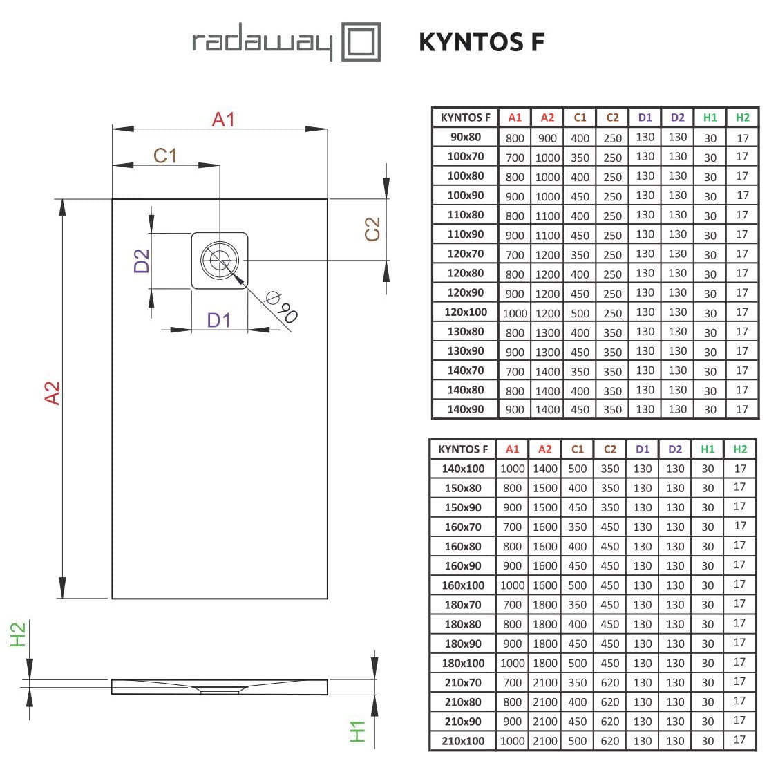 Brodzik czarny prostokątny Kyntos F 180x100 Black Radaway