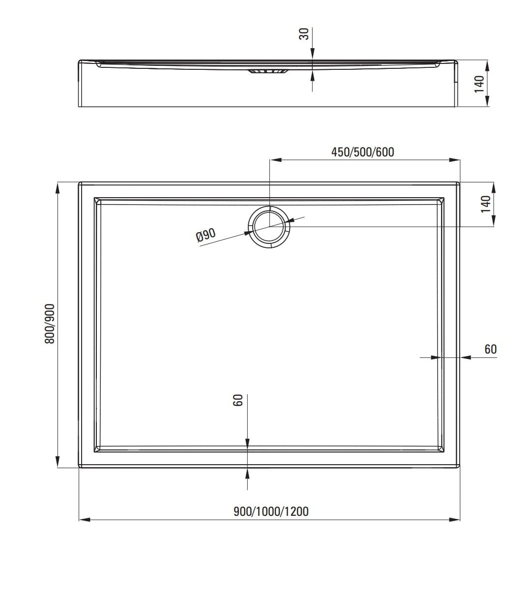 - Dłuższy Bok 90cm