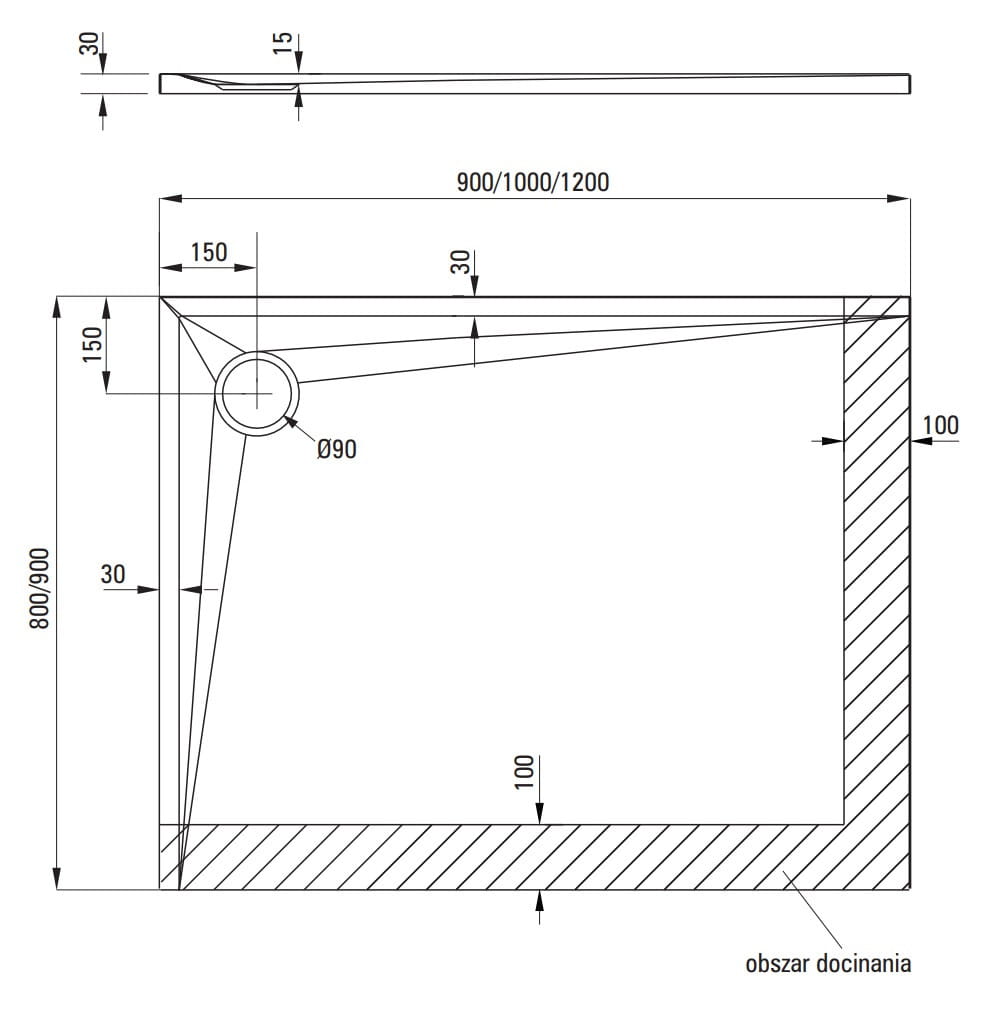 - Możliwość docinania brodzika Kerria Plus. Możemy dowolnie dopasować kształt brodzika Kerria Plus poprzez jego docięcie, żeby w pełni wykorzystać potencjał łazienek o nietypowych kształtach czy wymiarach. Precyzyjne docinanie umożliwia stworzenie wyjątkowej przestrzeni kąpielowej także w małych łazienkach. Docinamy tylko obszar zaznaczony na rysunku technicznym, a do tego celu zalecamy użycie wyrzynarki. Odciętą powierzchnię powinno się zabezpieczyć silikonem.