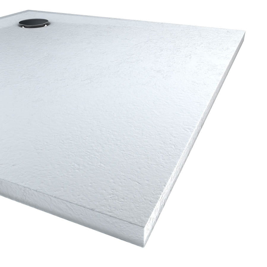 Seria Libra White Stone posiada matową powierzchnię o strukturze, naturalnego kamienia w białym kolorze (RAL 9003). Zaledwie 3 cm wysokości całkowitej oraz minimalistyczne wzornictwo efektownie akcentują strefę prysznica, zdobiąc wnętrze w nietuzinkowy sposób. Powierzchnia „White Stone” jest niezwykle trwała, do tego posiada właściwości Easy to Clean® oraz Antibac®.