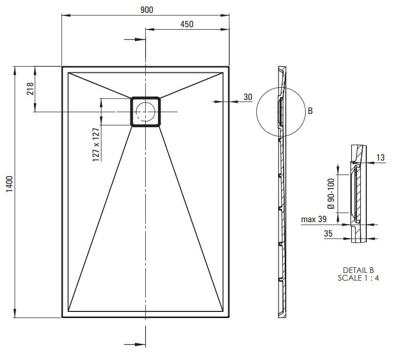 Prostokątny brodzik Correo wykonany został z trwałego granitu o właściwościach hydrofobowych, odpornego na uderzenia i wysoką temperaturę. Brodziki granitowe można dowolnie docinać, co pozwala na stworzenie niepowtarzalnej przestrzeni kąpielowej. Eleganckie, antracytowe wykończenie doskonale pasuje do armatury i ceramiki w wykończeniu titanium.