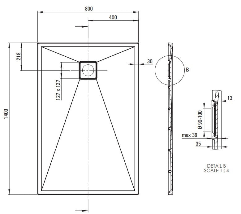 Prostokątny brodzik Correo wykonany został z granitu o właściwościach hydrofobowych, odpornego na uderzenia i wysoką temperaturę. Brodziki granitowe można dowolnie docinać i dostosować do każdej przestrzeni łazienkowej. Eleganckie, antracytowe wykończenie doskonale pasuje do armatury i ceramiki w wykończeniu titanium.
