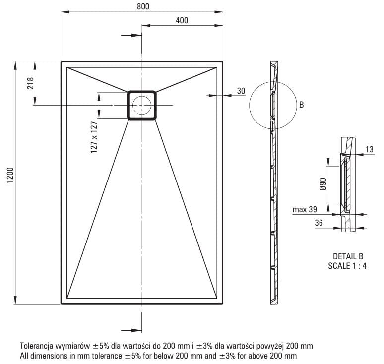 Przedmiotem sprzedaży jest brodzik bez syfonu.