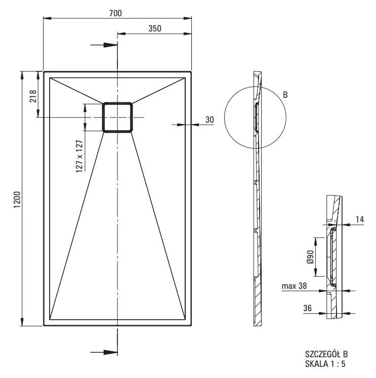 Przedmiotem sprzedaży jest brodzik bez syfonu.