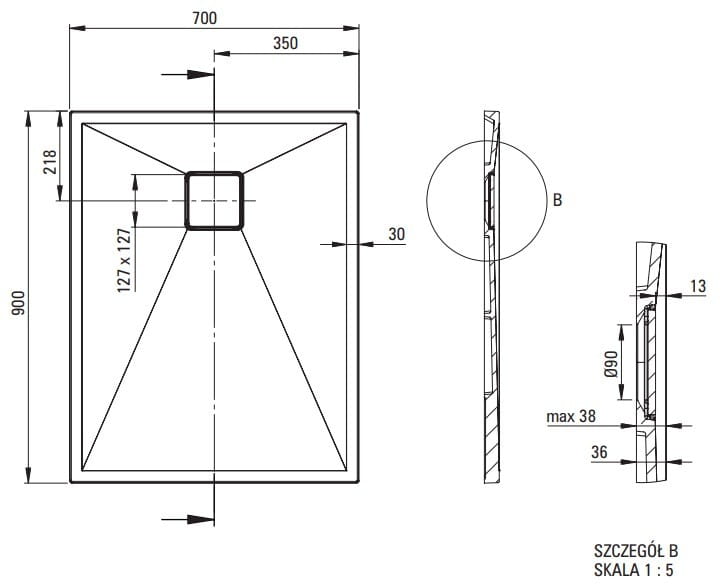 Przedmiotem sprzedaży jest brodzik bez syfonu.