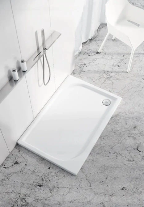Materiał: kompozyt Stonicryl®, wielowarstwowy kompozyt wzmacniający konstrukcyjnie dno i ranty brodzika, dostępny w wersji gładkiej o wysokim połysku lub z matowym efektem mineralnym (kamienista struktura powierzchni)