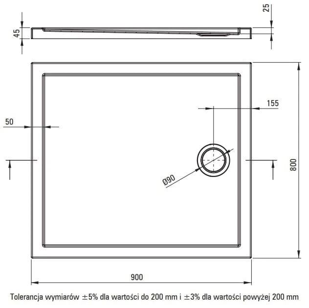 - Przedmiotem sprzedaży jest brodzik bez syfonu.