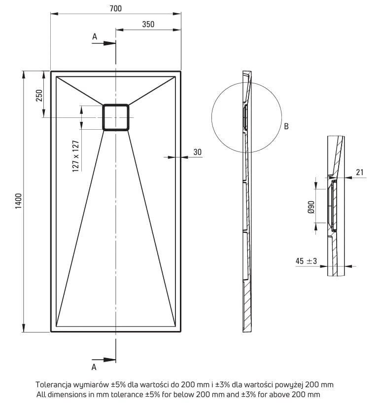 Nowoczesny brodzik granitowy stworzony i wyprodukowany w całości w Polsce. Ma wysoką odporność na uderzenia, różnice temperatur czy przebarwienia. Jeśli planujesz wyposażyć łazienkę na długie lata, dobrze trafiłeś. Utrzymanie czystości ułatwia hydrofobowość, płaska powierzchnia i maskownica odpływu. Woda swobodnie spływa, nie pozostawiając kamiennego osadu. Nie można zapomnieć też o wyglądzie! Granitowy brodzik idealnie będzie pasował do każdej unikalnej łazienki. Kształt prostokątny, który idealnie nadaje się do zabudowy lub większych łazienek.
