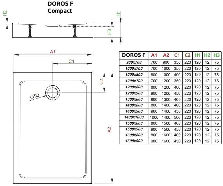 Brodzik prostokątny Radaway Doros F Compact 120x90 Stone kaszmirowy
