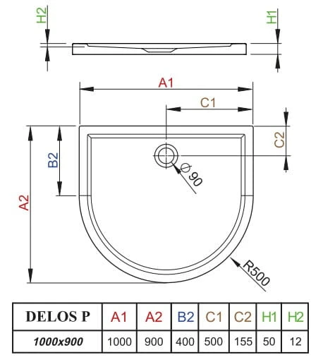 Brodzik przyścienny płytki Radaway Delos P 100x90x5x1,2