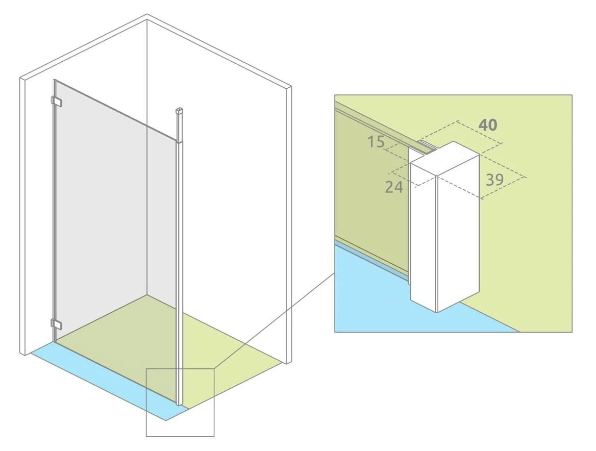 Planując montaż kabin z serii Modo New z teleskopowym wspornikiem dosufitowym na brodziku musimy zamówić kabinę o wymiarach niestandardowych, ponieważ wspornik dosufitowy zwiększa wymiary kabiny o 24 mm. Montaż kabin z teleskopowym wspornikiem dosufitowym na brodziku jest możliwy, jeżeli rant brodzika, na którym stoi wspornik ma szerokość co najmniej 45 mm. Montaż kabin z serii Euphoria Walk-in z teleskopowym wspornikiem dosufitowym na brodziku jest możliwy, jeżeli rant brodzika, na którym stoi wspornik ma szerokość co najmniej 45 mm. Wyjątek stanowi model Euphoria Walk-in III, którego nie zalecamy montować na brodziku. Planując montaż bezpośrednio na podłodze należy pamiętać, że teleskopowy wspornik dosufitowy powiększa gabaryty kabiny o 24 mm.