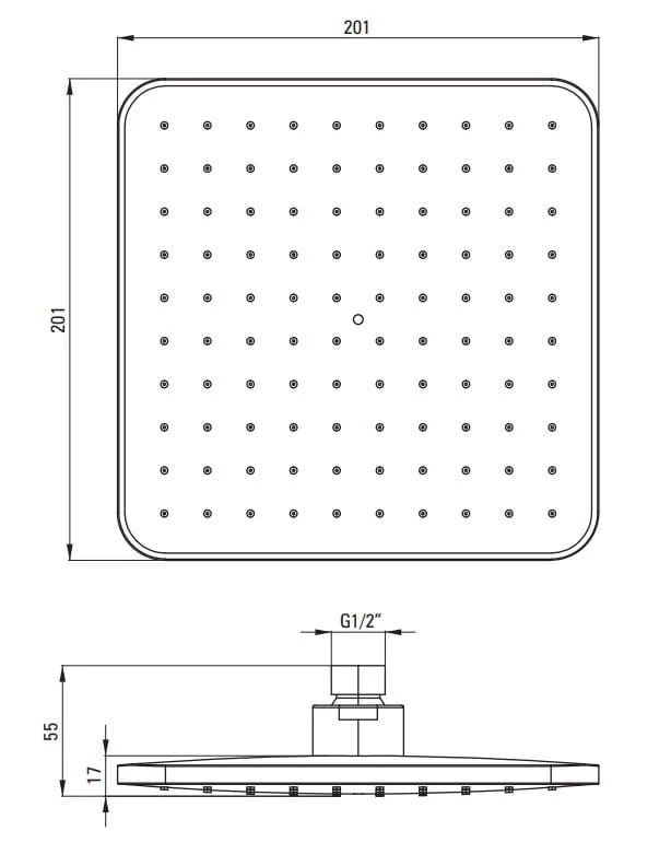 Głowica prysznicowa 1-funkcyjna - 201x201 mm Boro Deante nero czarna