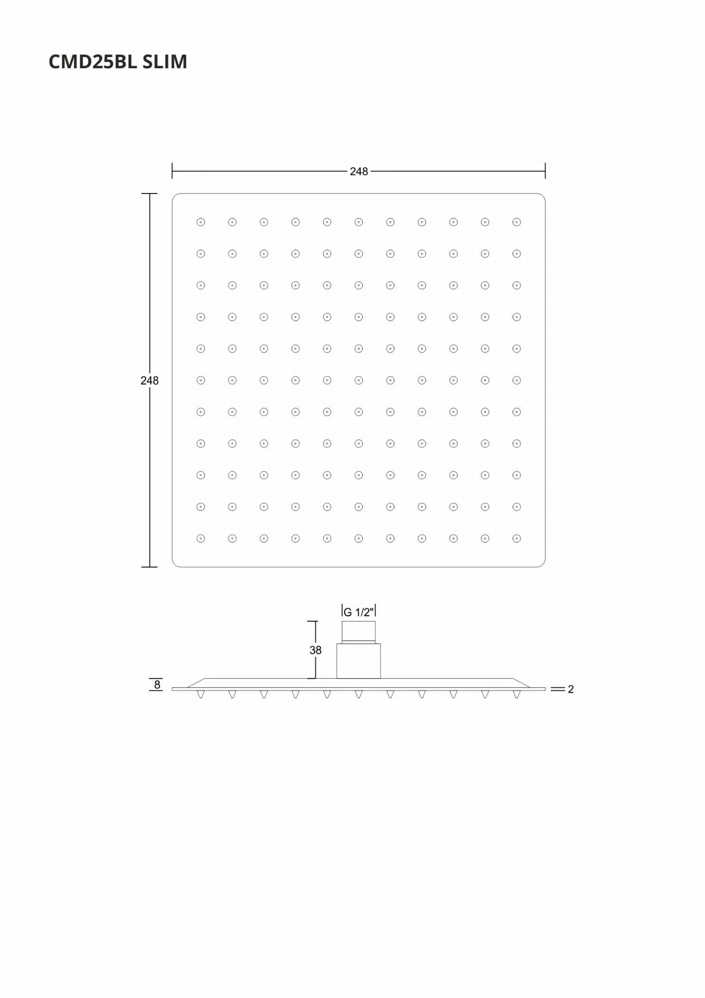 Deszczownica natryskowa corsan cmd25bl slim stalowa czarna kwadratowa 25 cm
