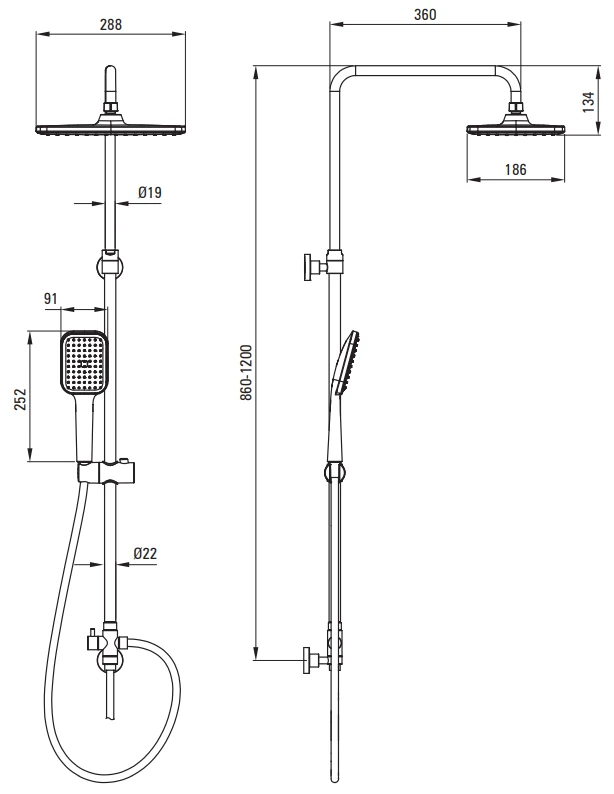 - DESZCZOWNICA - Regulacja wysokości drążka do [mm] 1200