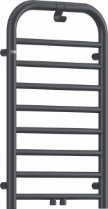 Elegancki grzejnik łazienkowy o rozmiarach 85x50 cm, cechuje się delikatnymi kształtami i wyjątkowym wykończeniem w kolorze Titanium. Wyposażony został w użyteczny haczyk na ręczniki lub szlafrok. Jest to hybrydowy model: wodno-elektryczny z możliwością dodania grzałki, która zapewni dodatkowe ogrzewanie lub suszenie ręczników poza sezonem grzewczym. Grzałka 400W dostępna jest w ofercie Deante. Do grzejnika należy dokupić zawór. Zarówno opcjonalna grzałka, jak i niezbędny zawór dostępne są w tym samym kolorze co grzejnik.