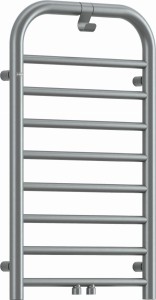 Stylowy grzejnik łazienkowy w matowym kolorze stalowym, o rozmiarach 85x50 cm, wyróżnia się obłymi kształtami i wysoką jakością wykonania. Wyposażony jest w użyteczny haczyk na ręczniki lub szlafrok. Jest to hybrydowy model: wodno-elektryczny z możliwością dodania grzałki, która zapewni dodatkowe ogrzewanie lub suszenie ręczników poza sezonem grzewczym. Do grzejnika należy dokupić zawór. Zarówno opcjonalna grzałka, jak i niezbędny zawór dostępne są w tym samym kolorze co grzejnik.