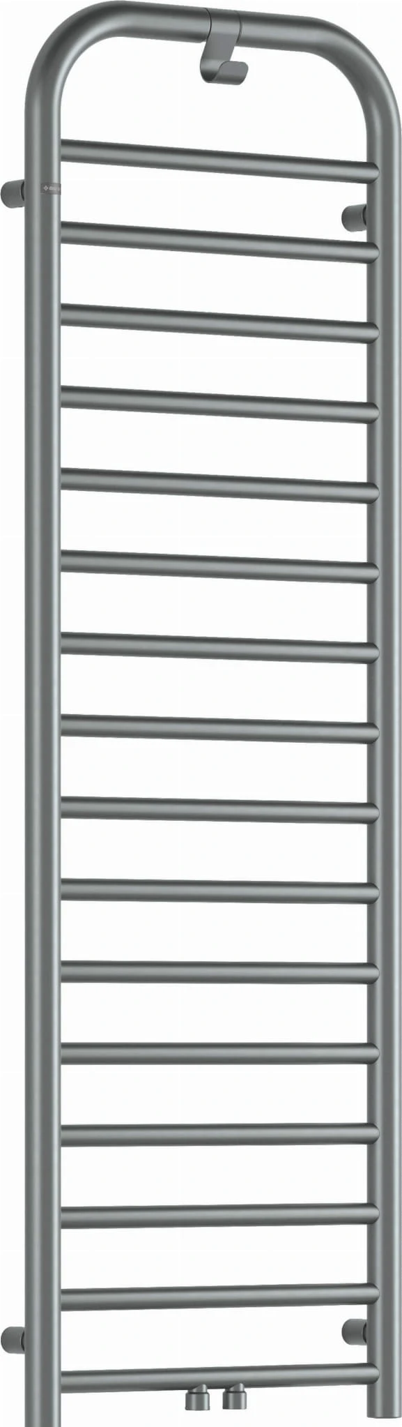 Funkcjonalny grzejnik łazienkowy o wymiarach 157x50 cm, wyróżnia się obłymi kształtami i wysoką jakością wykończenia w kolorze matowej stali. Wyposażony jest w praktyczny haczyk na ręcznik lub szlafrok. Jest to model hybrydowy: wodno-elektryczny z możliwością dodania opcjonalnej grzałki 600W, która zapewni dodatkowe ogrzewanie lub suszenie ręczników poza sezonem grzewczym. Do grzejnika należy dokupić zawór. Zarówno opcjonalna grzałka, jak i niezbędny zawór dostępne są w tym samym kolorze co grzejnik.