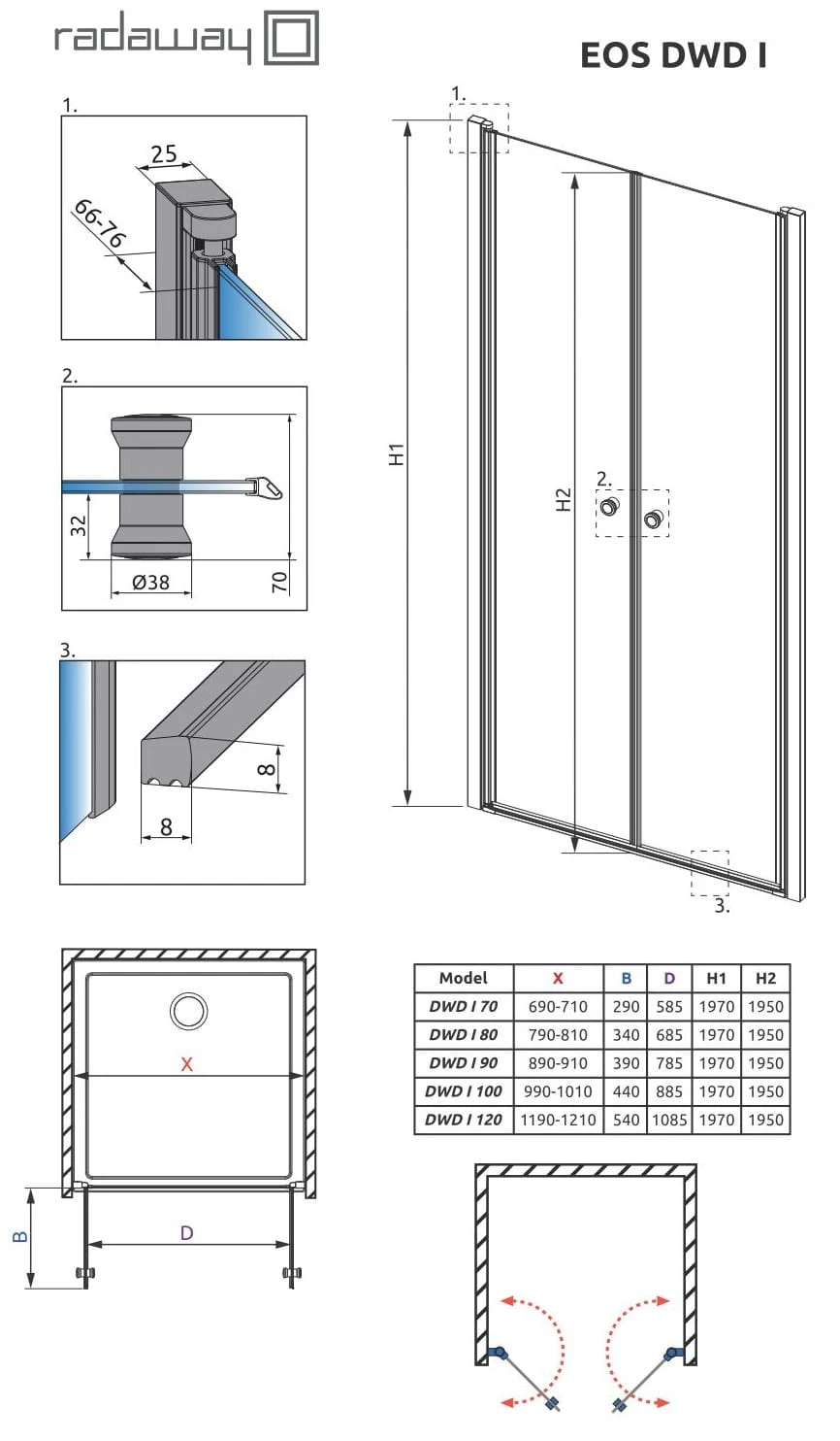 Drzwi prysznicowe Radaway Eos DWD I 70x197 szkło przejrzyste