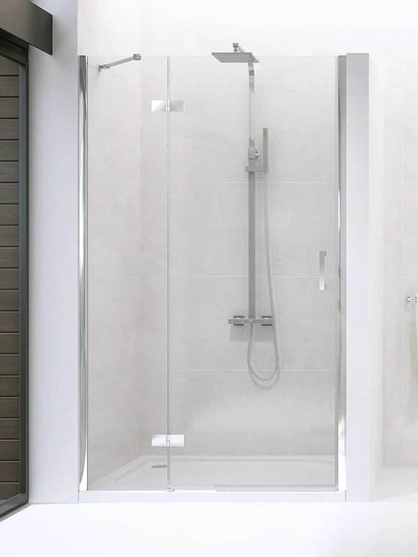 Drzwi prysznicowe pojedyncze uchylne. Drzwi NEW RENOMA wyróżniają się wyjątkową lekką, ale stabilną konstrukcją. Zawiasy unoszące drzwi chronią uszczelki i zapewniają łatwe otwieranie.