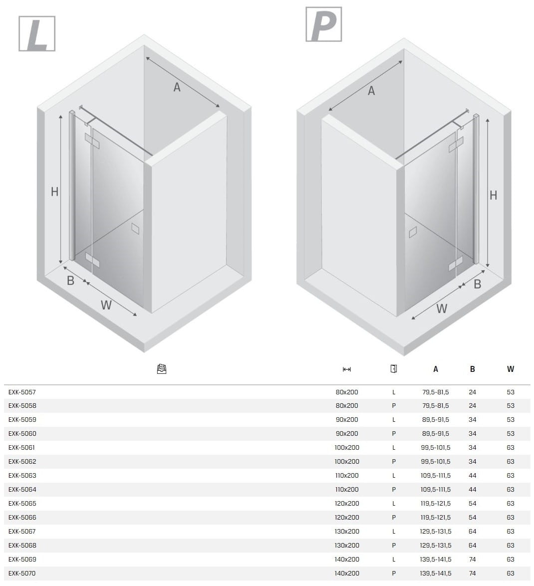 Drzwi prysznicowe New Trendy Reflexa 130x200 lewe, szkło czyste