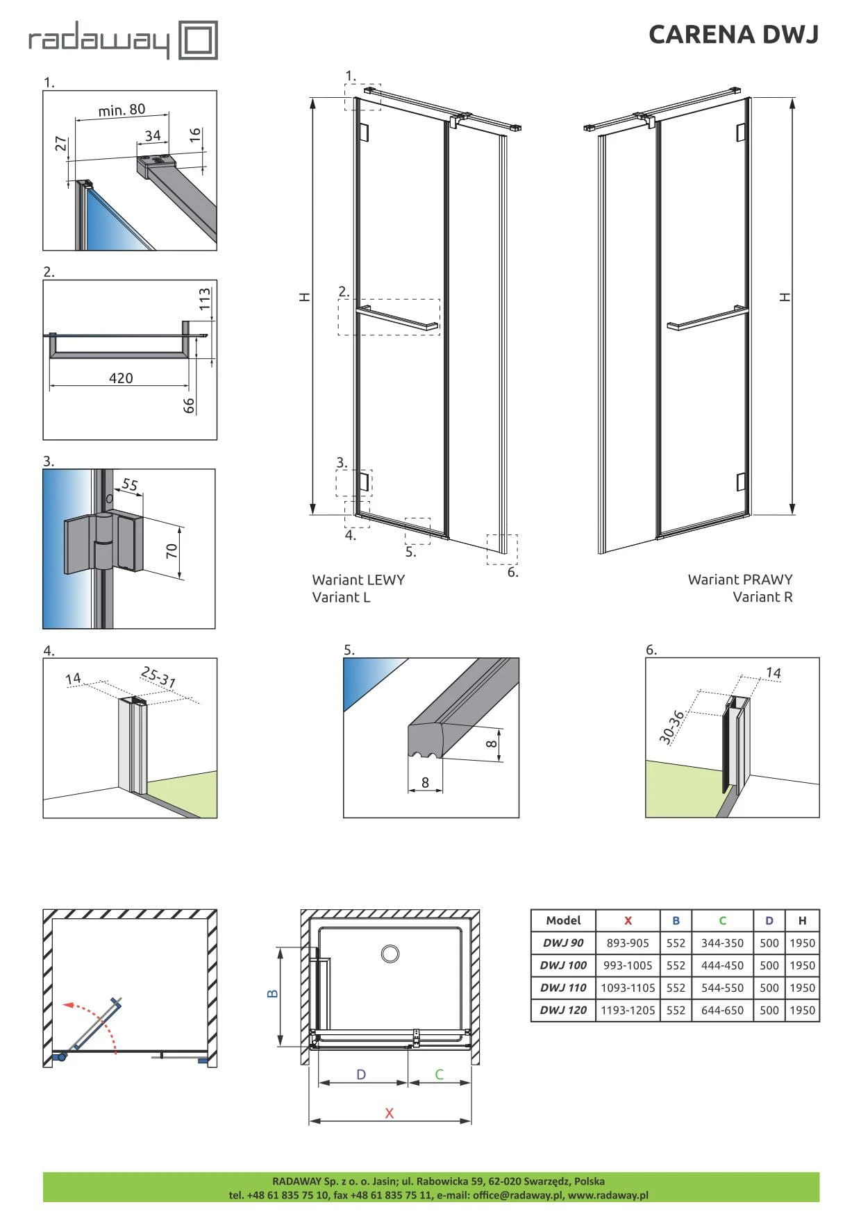 - Drzwi można zamontować na brodziku lub bezpośrednio na płytkach.