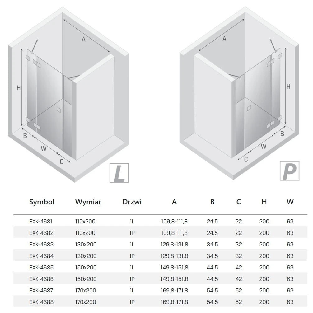 - Drzwi wykonane z hartowanego szkła o grubości 8mm, z powłoką ochronną Active Shield 2.0, która ułatwia utrzymanie szyby w czystości.