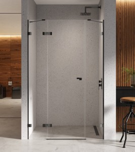 Model Eventa Black Chrome posiada eleganckie, błyszczące czarne detale. Drzwi prysznicowe zostały wyposażone w bezpieczne, hartowane szyby o grubości 8mm, z powłoką ochronną Active Shield 2.0.