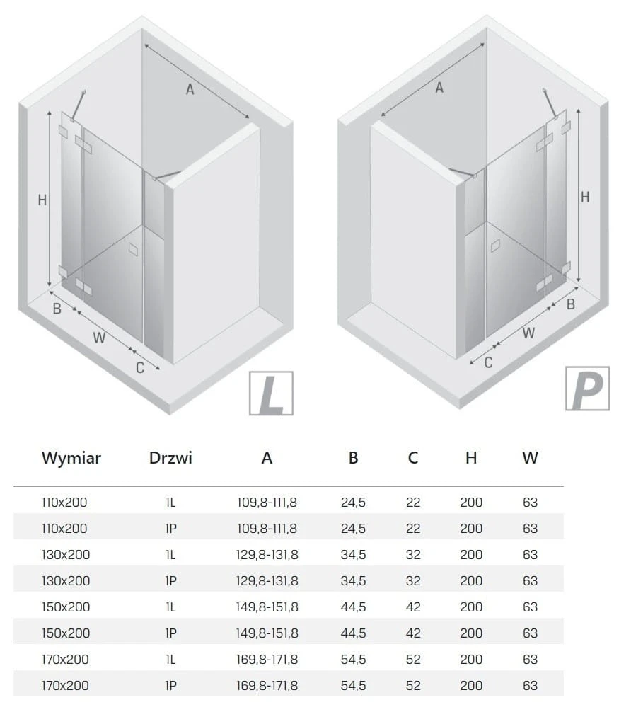 - Przedmiotem sprzedaży są drzwi w szkle przejrzystym bez brodzika.