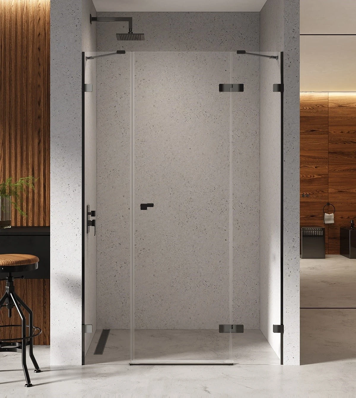 Model Eventa Black Chrome posiada eleganckie, błyszczące czarne detale. Drzwi prysznicowe zostały wyposażone w bezpieczne, hartowane szyby o grubości 8mm, z powłoką ochronną Active Shield 2.0.