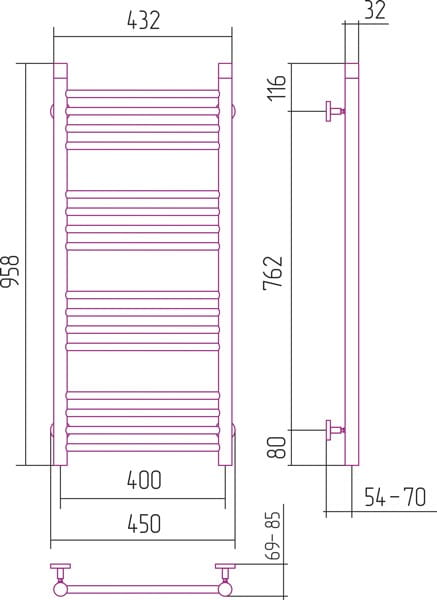 - wymiary zewnętrzne (wysokość x szerokość): 958x450 mm,