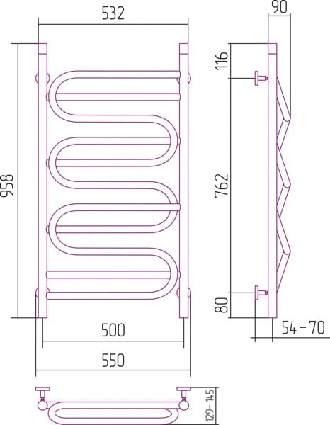 - wymiary zewnętrzne (wysokość x szerokość): 958х550 mm,