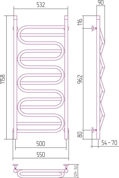 - wymiary zewnętrzne (wysokość x szerokość): 1158х550 mm,
