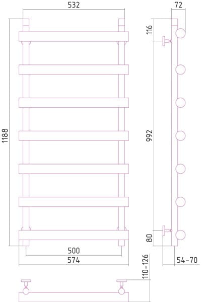 Oryginalny wzór w kształcie harmonijnej, geometrycznej drabinki. Grzejnik ten posiada masywne, okrągłe, nakładane na kolektor rurki poprzeczne, co korzystnie wpływa na jego odbiór wizualny i wydajność cieplną.