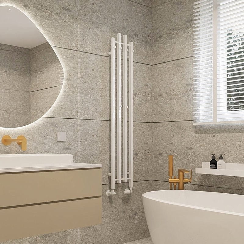 Grzejnik Tubo został stworzony z myślą o wąskich przestrzeniach. Jego smukłość podkreślają dwie środkowe rurki, przesunięte w górę. Kwadratowy przekrój rurek nadaje mu bardziej geometryczny kształt. Grzejnik prezentuje się pięknie nie tylko w łazienkach, ale nadaje się także do takich pomieszczeń jak korytarz czy przedpokój.