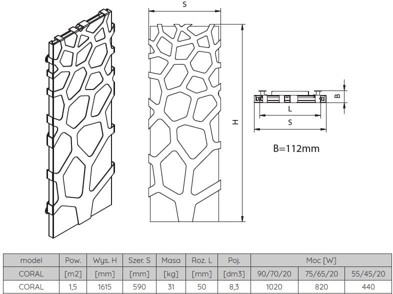 Grzejnik Coral zachwyca przede wszystkim oryginalnością. Wykonany jest ze stalowej tafli ozdobionej ażurowym wzorem w kształcie koralowca. Jest dostępny w szerokiej gamie kolorystycznej RAL oraz barw strukturalnych Radeco.