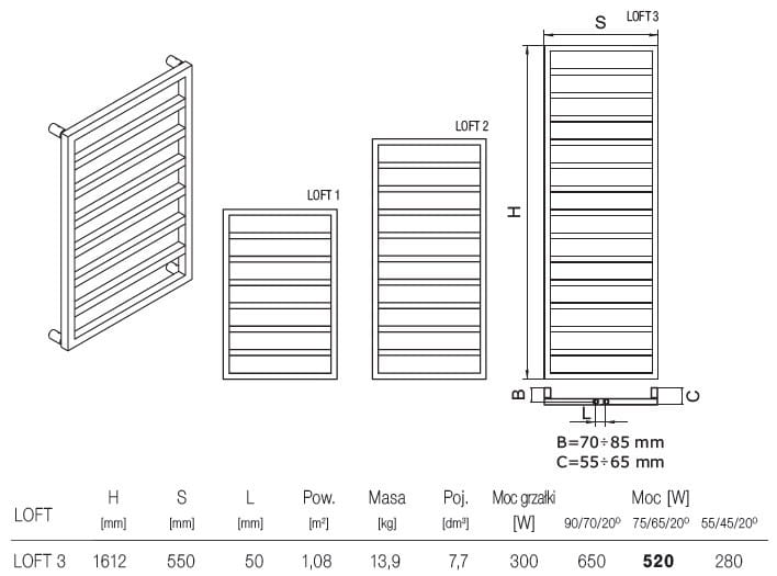 Loft jest grzejnikiem o prostym designie. Kształt drabinki nadaje mu walory użytkowe, nie ujmując jego minimalistycznym, pięknym wykonaniu.