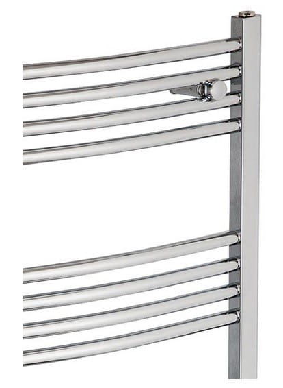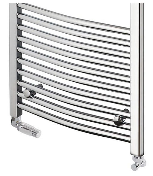 Chromowany grzejnik na kolektorach „D” o lekkim łuku. Produkt został wykonany z wysokiej jakości materiałów. Jest pokryty chromową powłoką galwaniczną, która chroni grzejnik przed korozją, a także nadaje mu estetyczny wygląd.
