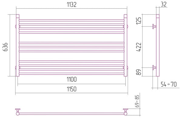 Pozioma wersja klasycznego grzejnika może być błyszczącą alternatywą dla grzejników płytowych. Świetnie sprawdzi się również w łazienkach na poddaszach. Dzięki gęstemu rozmieszczeniu rurek poziomych istnieje możliwość doboru różnego rodzaju wieszaków, stanowiących nie tylko ozdobę, ale również wyjątkowo funkcjonalny element grzejnika, przydatny do suszenia ręczników i ubrań.