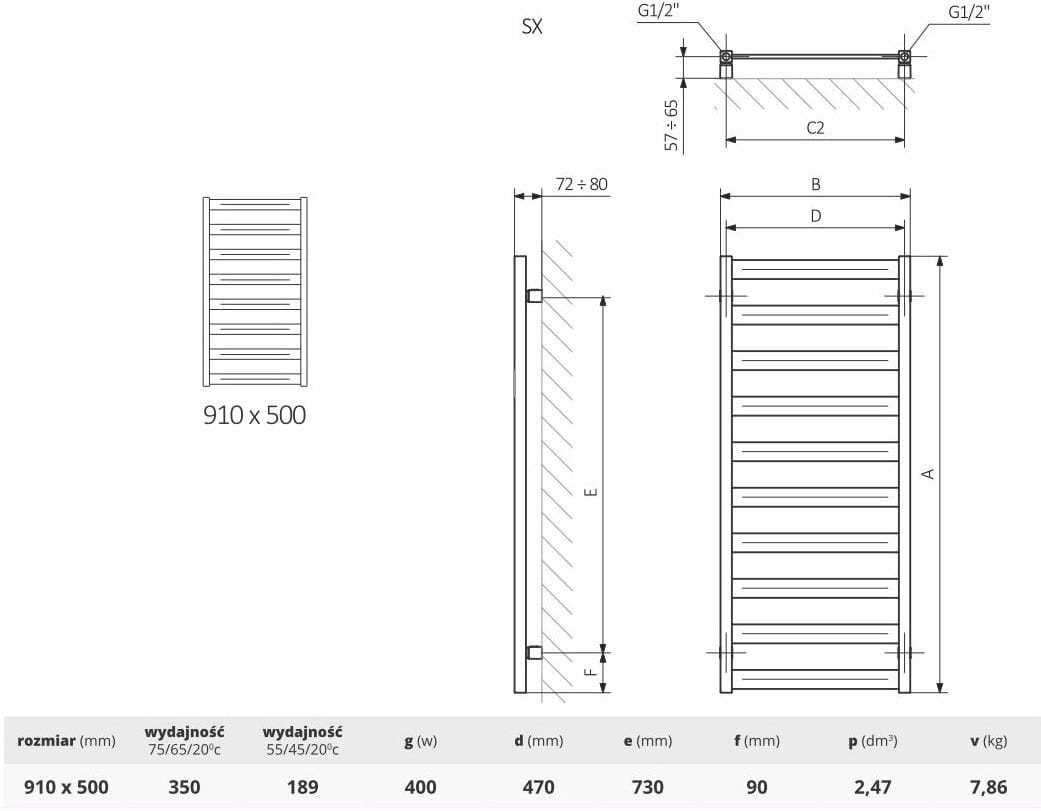 - Głębokość 72-80 mm